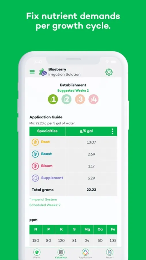 Nutrient Management – The FitNute® Calculator can project the exact amount of nutrients per stage, enabling the grower to fix the nutrient demands per cycle to use exactly what he/she needs.