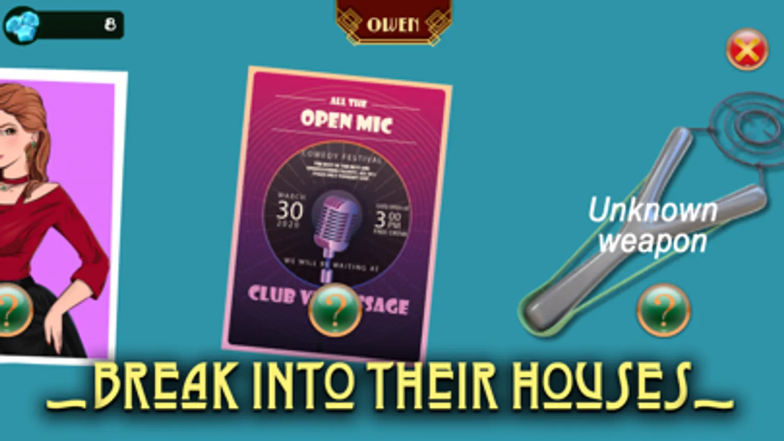 The main goal is to solve this case. There are no limits how you are going to make it. Look for clues by breaking into homes or hiring a hacker. Ash the most personal questions, and compile investigation boards on each unique character. Do you have what it takes to crack the case?