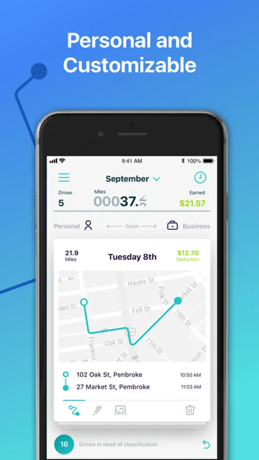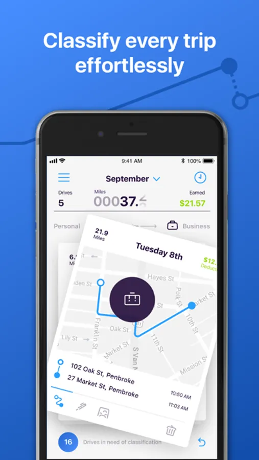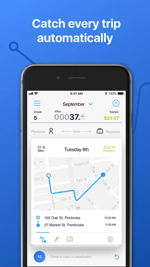 Simple creates an accurate, contemporaneous record of the miles you drive for work. Automatic drive detection means no stopping and starting the app. No need for manual paper logs.