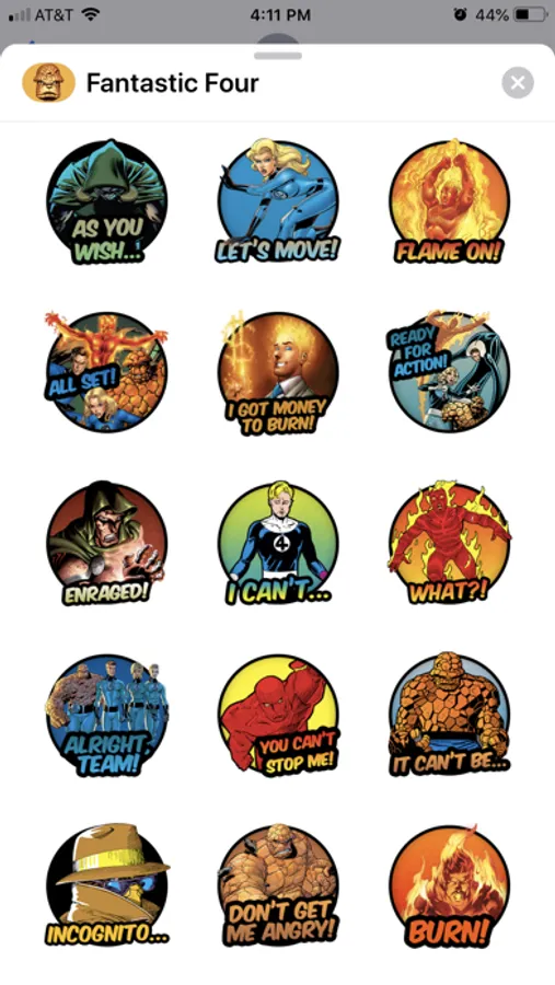 The Fantastic Four aren't just a team, they're a family! Join the Fantastic Four in their Adventures with these iMessage stickers, featuring your favorite characters: Mister Fantastic, Invisible Woman, Human Torch, the Thing, Doctor Doom, and Galactus!
