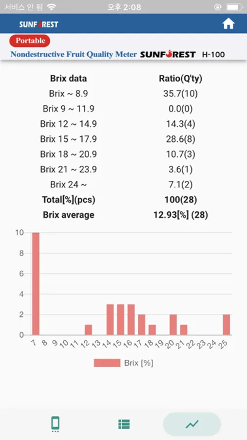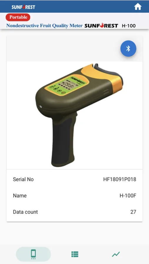 Interfacing with SUNFOREST H-100 device via Bluetooth, this App allows you to get meter readings from the instrument and display on smartphone.