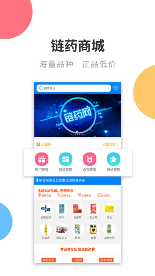 链药网系统是四川链药科技有限公司专为合作商终端客户提供保健品、医疗食品相关采购的专业采购软件。该APP支持商品查看、比价、下订单等功能,每天都有精选药品、优惠活动推荐。让终端随时随地、放心采购!