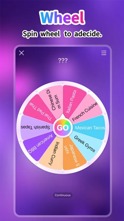 Decision Master can help you make decisions with joy and ease! Just input a dilemma, spin the wheel for a satisfactory answer. With Decision Master, making quick decisions has never been easier!