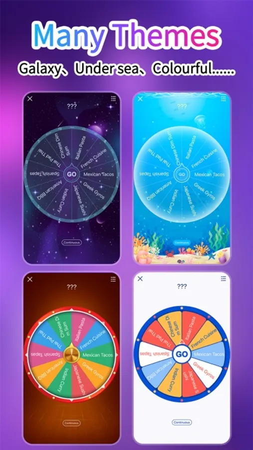 • Create your own wheel.There are many features that can be customized(Such as Probability, Item's Picture, Background picture and music...).