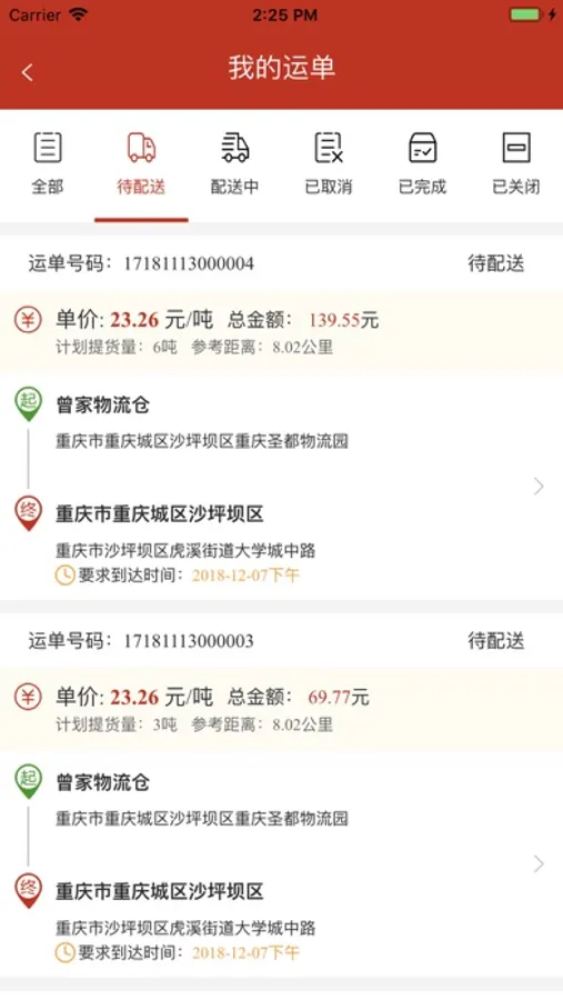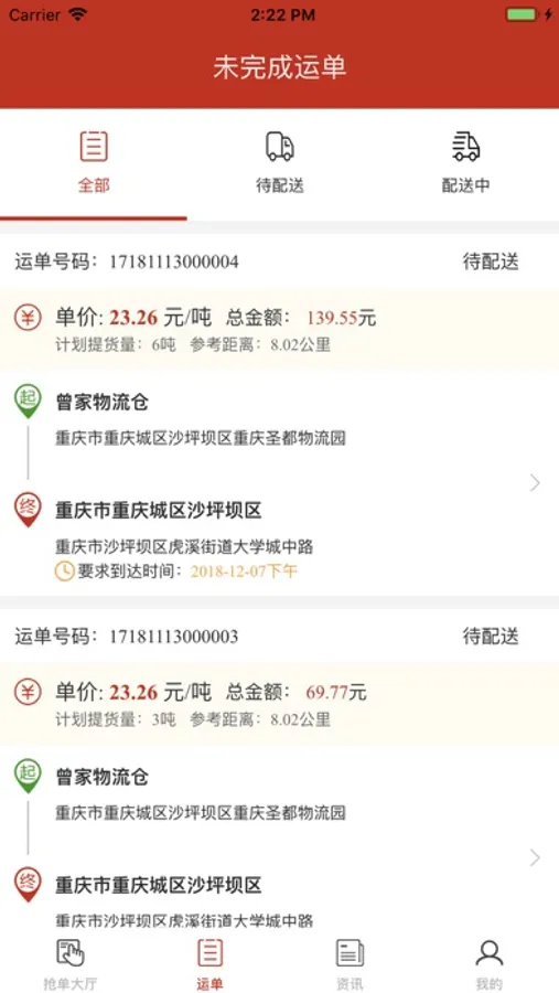司机版服务于司机,支持订单查询、在线抢单,物流路线规划,物流执行路线跟踪。