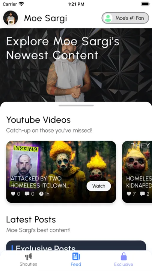 - The Exclusive section is a paid subscription feature that will have exclusive videos that are only posted on the application for paying subscribers.