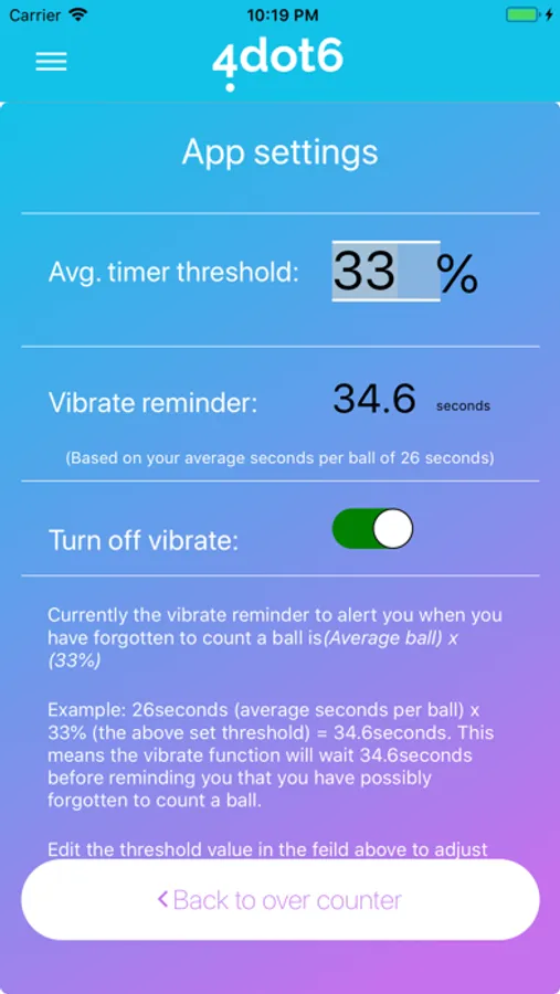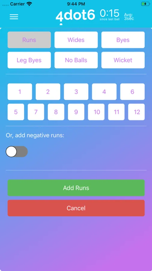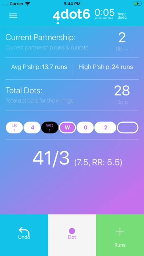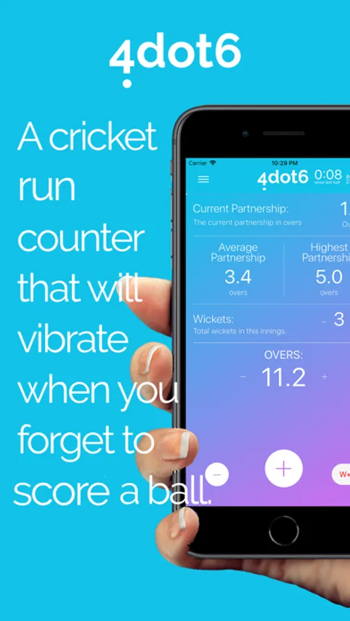 Use the advantage of having an app as your cricket umpire run counter. The 4dot6 cricket umpire run counter app will vibrate to remind when you have forgotten to count a ball.
