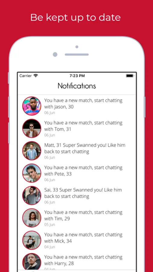 FREE TO USE: Swanned is free to download and use for matching and messaging. However you may be asked to pay if you reach a daily limit.