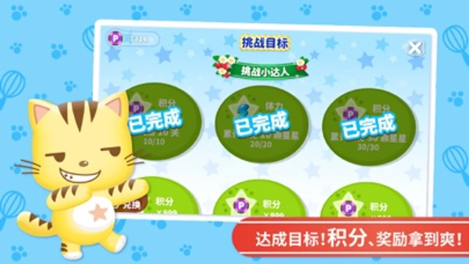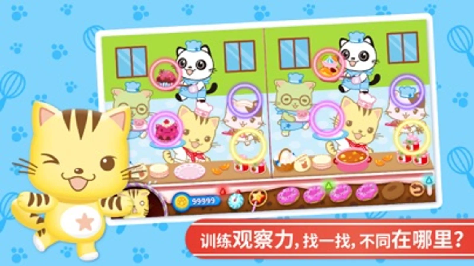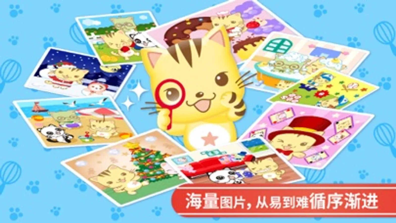 《星猫找不同》需要在限定时间内,找出两幅图画中不同的图案,在看看、找找、认认的趣味游戏过程中,培养宝宝观察能力,逻辑思维和形象思维能力。