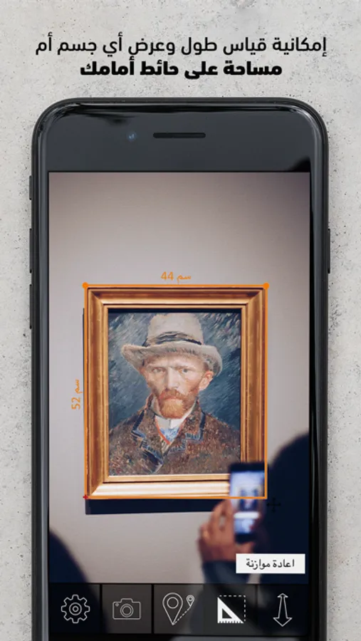 اكتشف بعد الأجسام عنك، سواء كانت مبنى أو حائط في غرفتك أو جسم قريب أو بعيد عنك. هل احتجت يوم لتعرف إذا كانت صورة أو لوحة ما تتسع للفراغ على الحائط في غرفتك؟ مع هذا التطبيق يمكنك قياس طول وعرض الأجسام المعلقة على الحائط كالصور أو أجهزة التلفاز المعلقة أو أي جسم آخر أو حتى قياس المسافة بين أي نقطتين حولك.