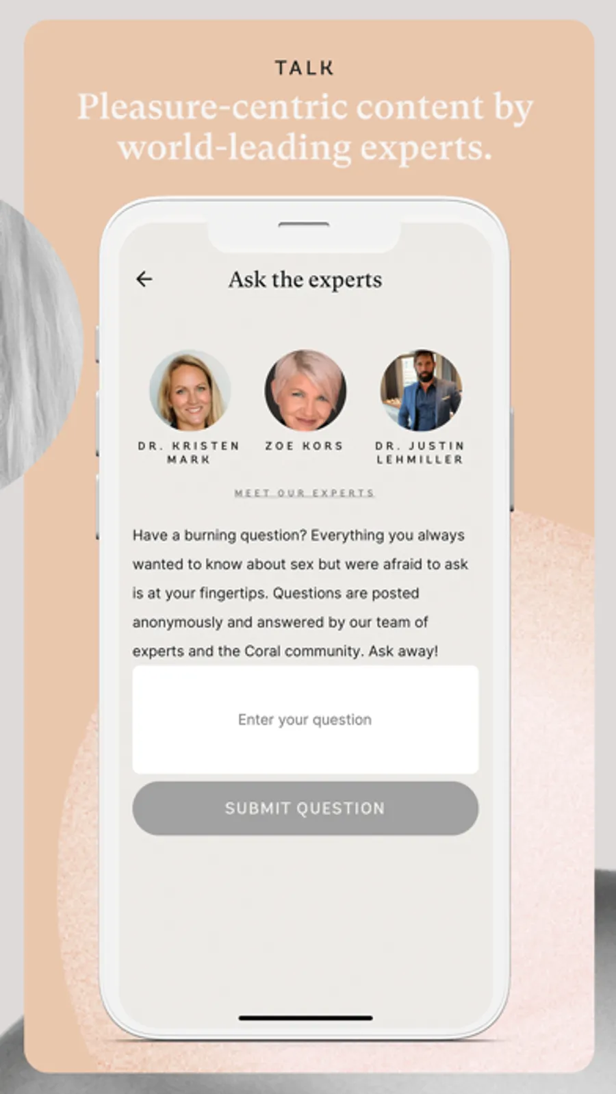** Asking our experts anything. Every Coral subscription includes access to intimacy coaches and advisors