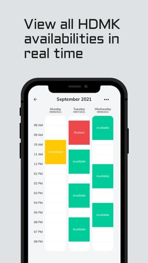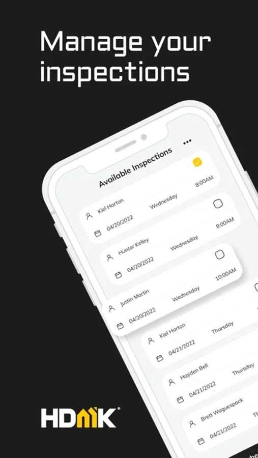 Quickly view all HDMK inspector’s availabilities in real time, book inspections, view previous appointments, and view all upcoming appointments.