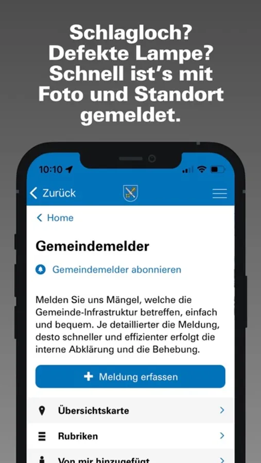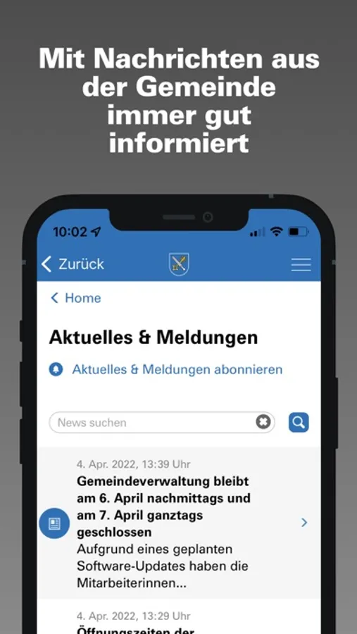 Mit dieser App können Sie sich laufend und mobil über das Leben, Wohnen und Arbeiten in unserer Gemeinde informieren. Aktuelle Meldungen erhalten Sie auf Wunsch per Push-Nachricht und Sie haben die Möglichkeit direkt mit uns in Kontakt zu treten.