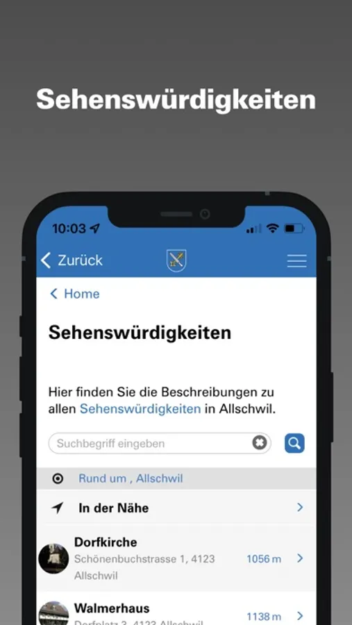 Sie finden unter anderem auch Informationen über Sehenswürdigkeiten, können im Veranstaltungskalender stöbern, sich über den Termin der nächsten Grünabfuhr informieren oder von unterwegs eine SBB Tageskarte bestellen.