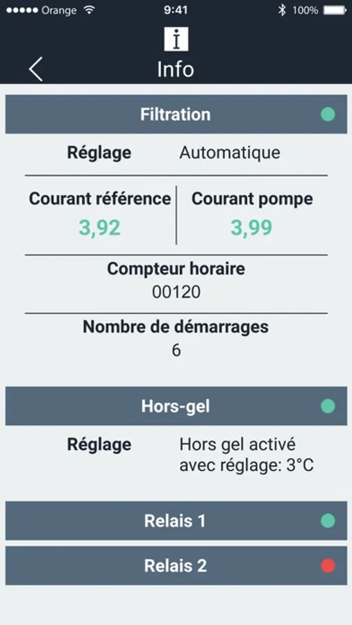 - Suivi de la filtration, consommations de courant, compteur horaire, alertes et défauts.