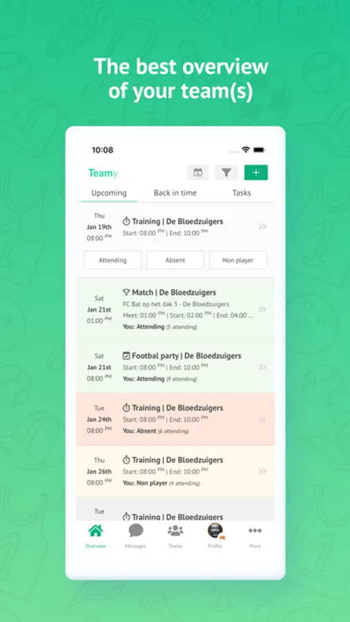 Teamy was developed in response to our own frustrations and feedback from other amateur teams about the recurring question: who is present and who is not? This led to the idea of creating a user-friendly app for all amateur sports teams, where the attendance of each individual can be indicated.