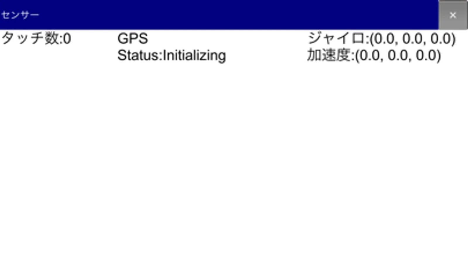 タッチパネル、GPS、ジャイロ、加速度をリアルタイムに表示。