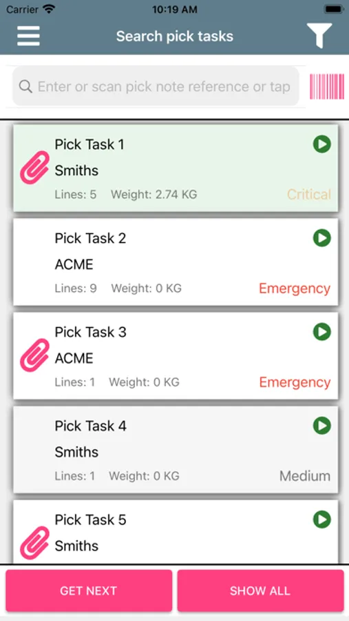 The pick task represents an electronic version of the printed pick note.
