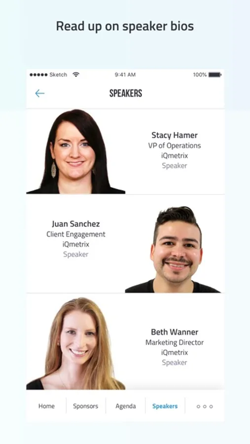 - Speaker and attendee profiles so you know who you'll be learning from and connecting with.
