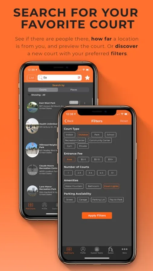 Find Courts: Looking for courts near you? Discover courts, fields, parks, recreational facilities, community centers, gyms, schools and more around you! Don’t see your local court on the app? Be the first to mark your new court for other players to enjoy.
