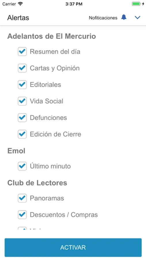 -Active alertas en su móvil y sea el primero en informarse: Adelantos de Secciones, Beneficios Club de Lectores, y Noticias de último minuto Emol.