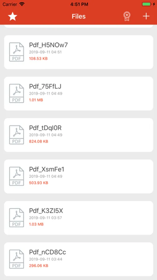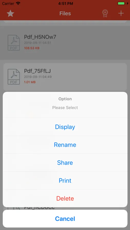 Select your mages from library and Convert to Pdf with our app you can also view list of all created PDF with size and created date, Share or delete the pdf by long pressing the file in the list.