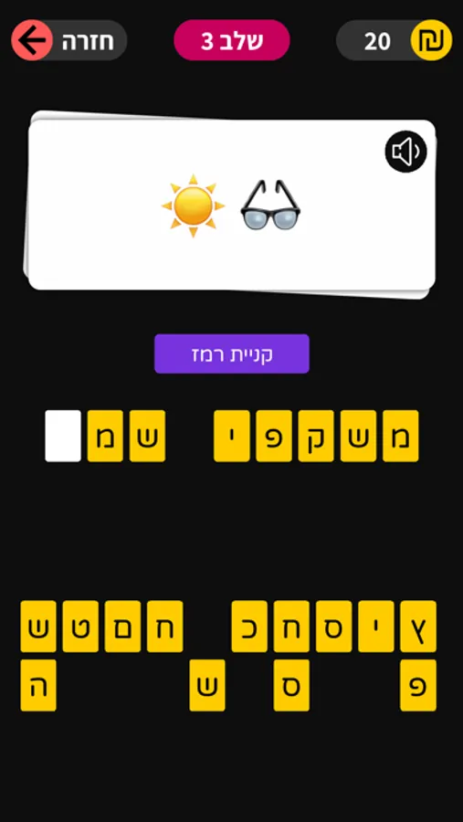 טיפ: במידה ואתם לא מצליחים לענות על שלב מסויים, צלמו מסך ותשלחו לחברים, אולי הם יצליחו לפתור !