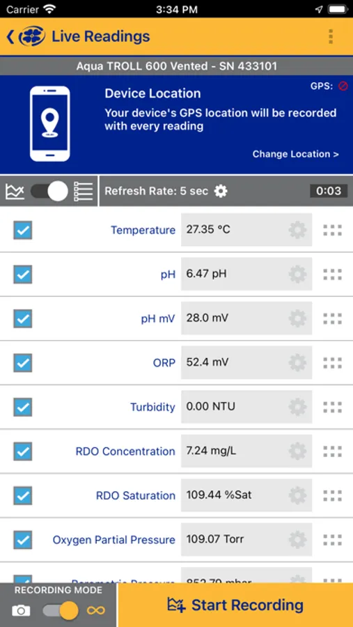 • View data for conductivity, optical dissolved oxygen (DO), ORP, pH, turbidity, water level/pressure, temperature, ammonium, nitrate, chloride sensors, chlorophyll a, phycocyanin (BGA-PC), phycoerythrin (BGA-PE), FDOM, crude oil, rhodamine WT, fluorescein WT