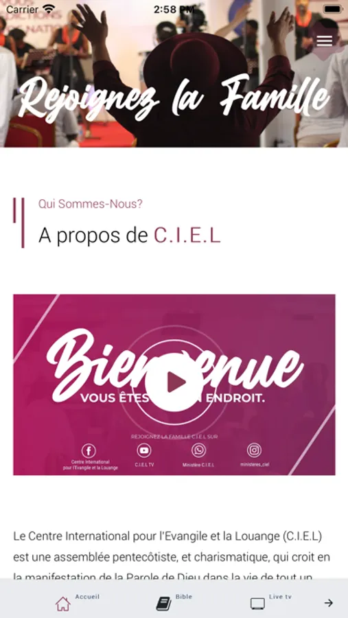 Le Centre International Pour l’Évangile et La louange - C.I.E.L. anciennement dénommé France-Fleuve De Vie est une église évangélique, pentecôtiste et charismatique basée à Antony (France) depuis plus de 10 ans.