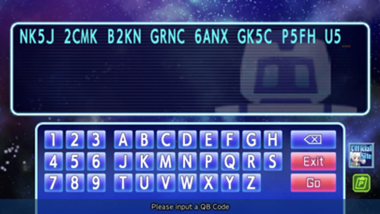 - You can play by "QB code" input.