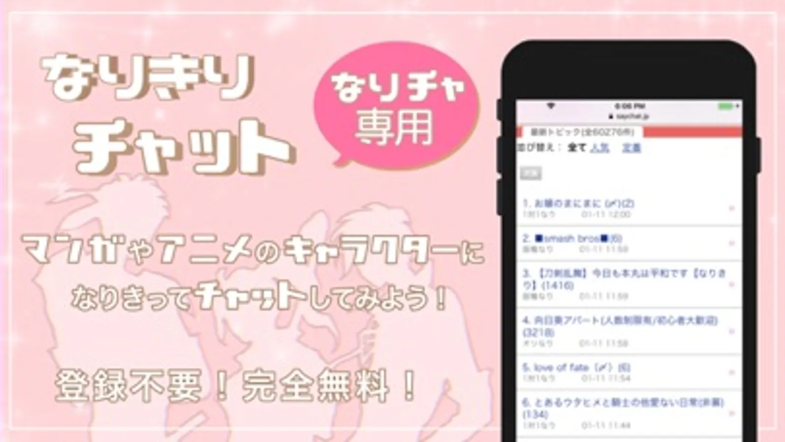 マンガやアニメのキャラになりきってチャットしよう!