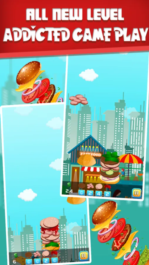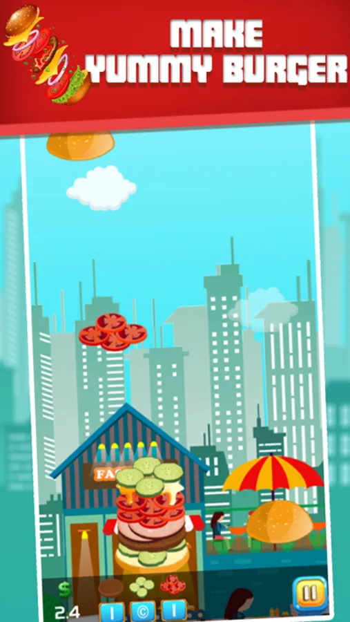 Get ready Catch all the falling ingredients to build and make delicious yummy sweet testy burgers deliver to customer and earn money. Make the Tower block or Stack of your burger as high as much possible to the sky. Make the biggest and better burger for your customer to earn more tips and more money from your customer. As more order completes and bigger burger you make, the new items and new ingredient will be unlocked to make more yummy and delicious burger.