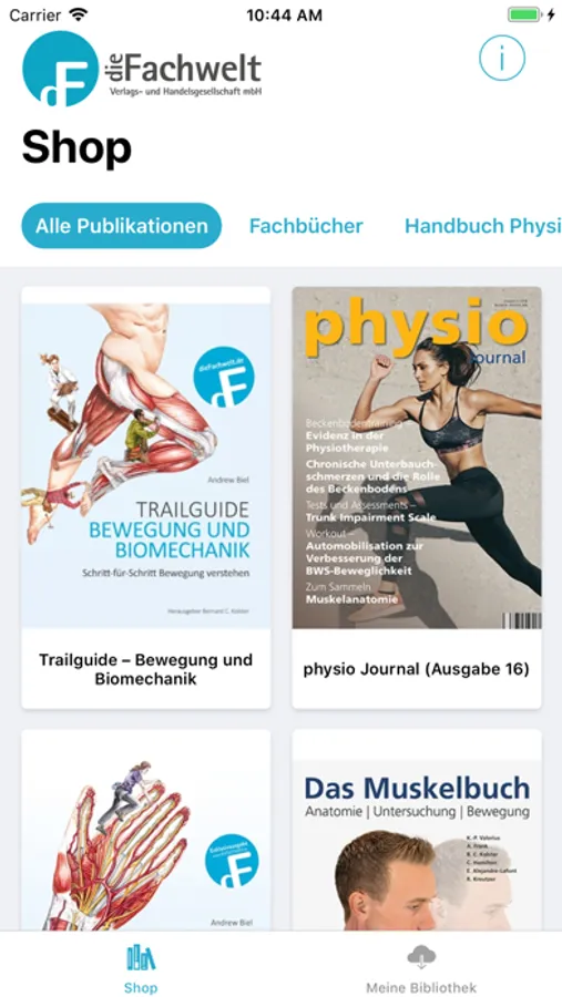 Als Fachwelt Verlags- und Handelsgesellschaft bieten wir Fachbücher für die Physiotherapie an, die sich speziell für die schulische Ausbildung eignen, ebenso aber auch für die berufliche Praxis. Eine Besonderheit sind unsere verlagseigenen Exklusivausgaben. Diese sind zu einem besonders günstigen Preis erhältlich. Beispielsweise die "Heller-Skripte" für die Physiotherapie Prüfungsvorbereitung und zur Examensvorbereitung. Alle Ausgaben der Zeitschrift „physio-Journal“, die seit 2013 erscheint, stellen wir unserer App kostenfrei zum Download zur Verfügung.