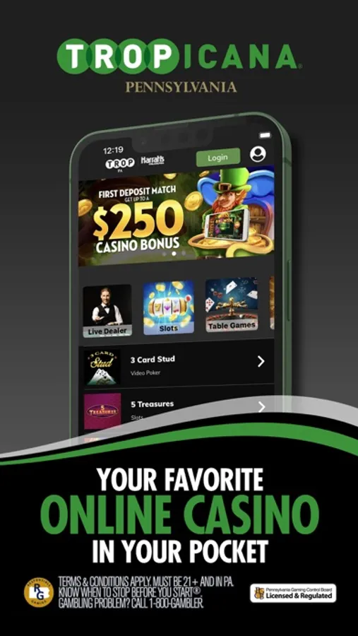 Enjoy real casino action in true Tropicana style anytime, anywhere in Pennsylvania with the Tropicana Casino mobile app. Play blackjack, live dealer table games, roulette, slots, video poker and more. All the famous favorites and big progressive jackpots are at your fingertips.