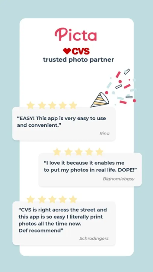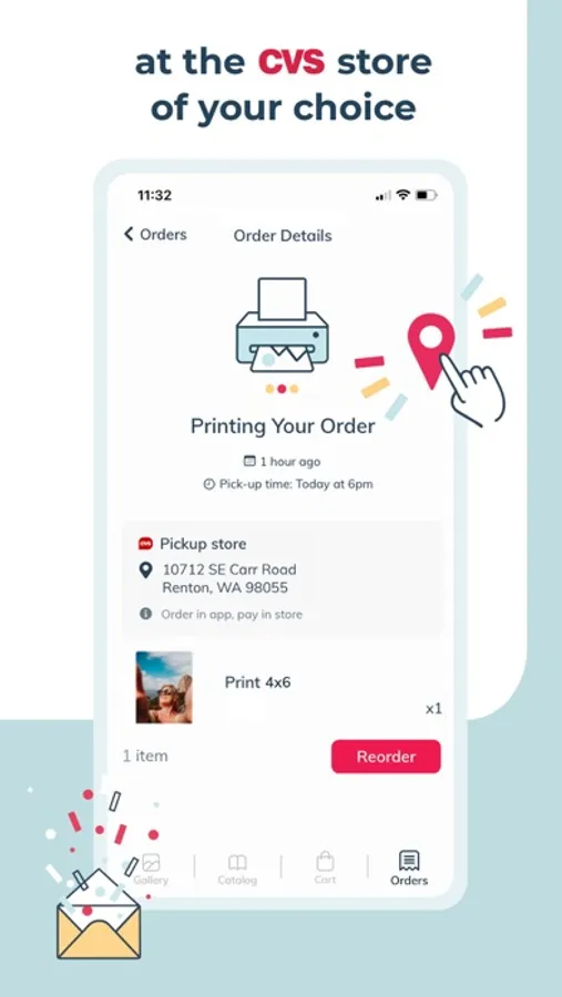 Order prints directly on your phone and select your nearest CVS store for same-day pickup.