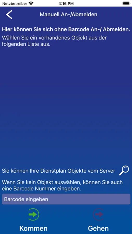 Anmeldung und Abmeldung per Barcode, QR Code oder Manuell über eine Objektauswahl.