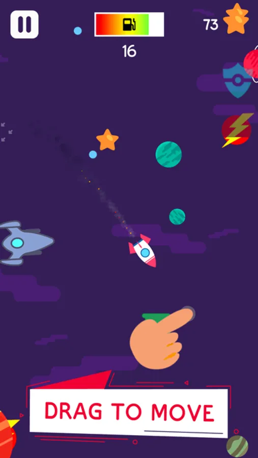 Draggy Rocket is an addictive and challenging arcade game that will test your flying skills and abilities. Fly by dragging your rocket through the infinite space and try to avoid asteroids and planets.