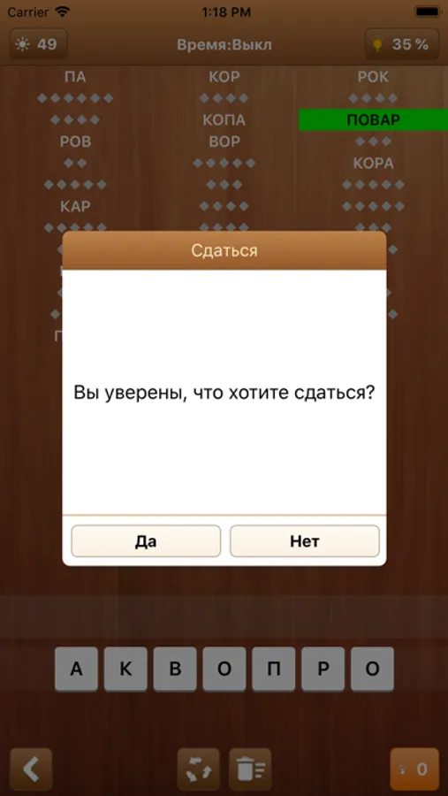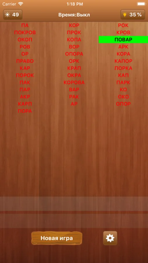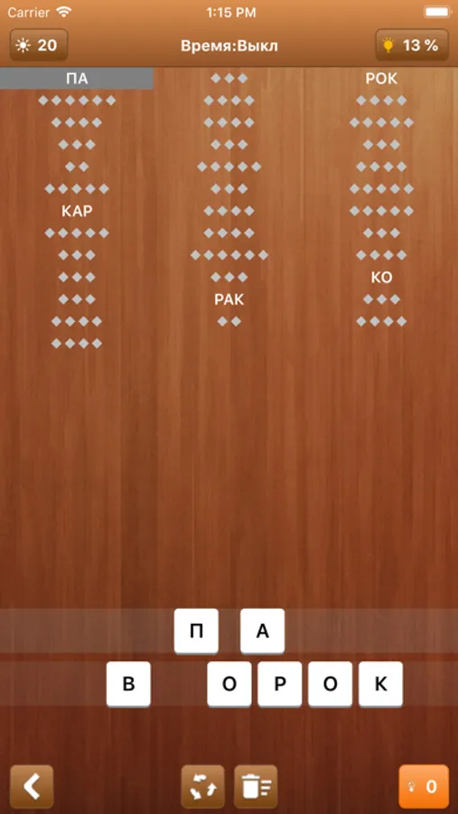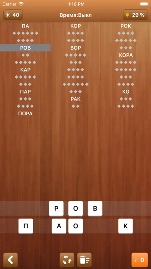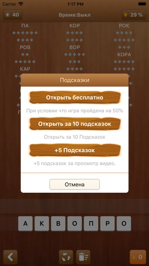 Cоставляйте слова из букв другого слова, представленного вам на уровне.