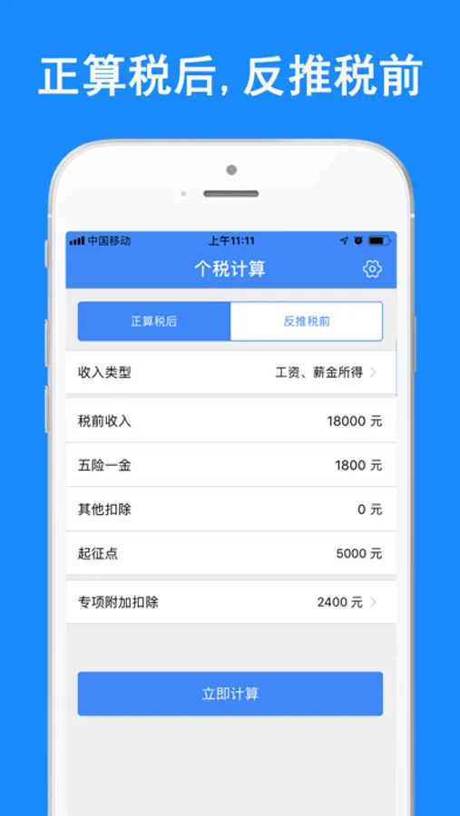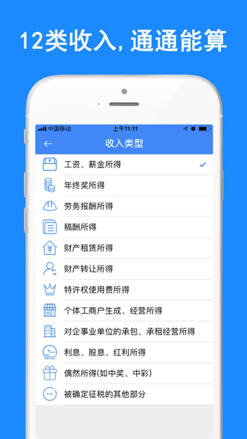 《个税计算器》,一款专业个人所得税计算工具,提供十二类所得应缴税的计算参考。2019年最新个税计算器,支持最新税率表、最新专项附加扣除税法!