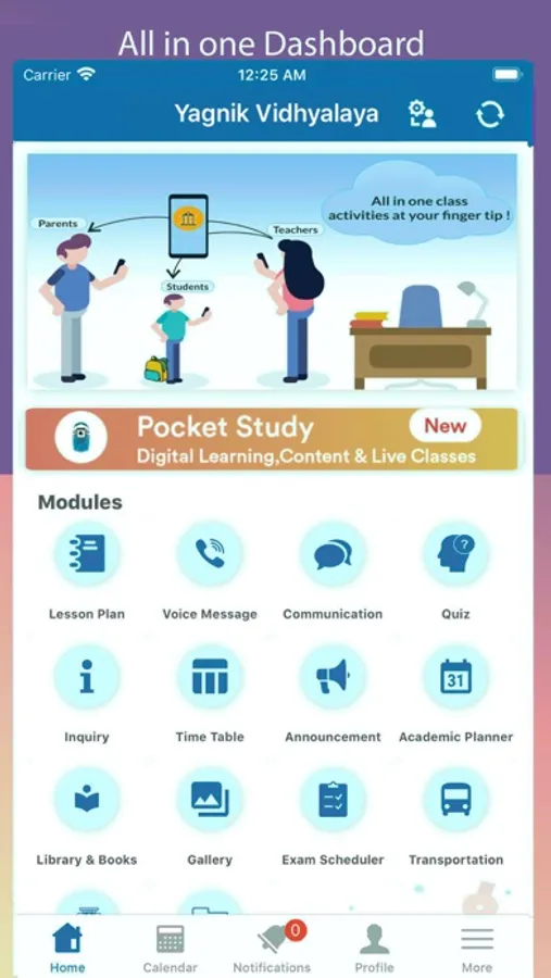 Yagnik Institute App is a platform which helps students, Teachers and Parents get connected. A common tool to interact, share & learn together via dynamic tools of this Web/App. Here, everybody is free to learn & grow via digitally connected campus of an institute which help an individual in daily activities like sharing digital materials, discuss on board, creating and participating in live tests, notice board, Calendar module and many more.