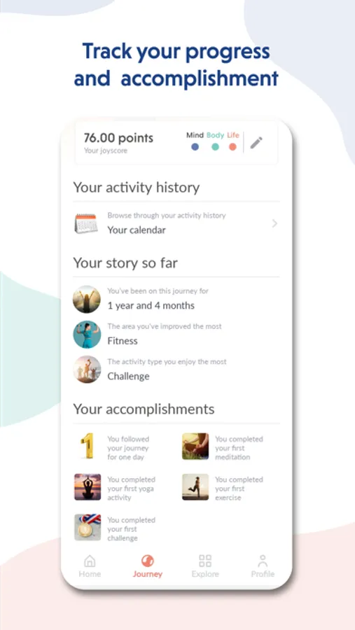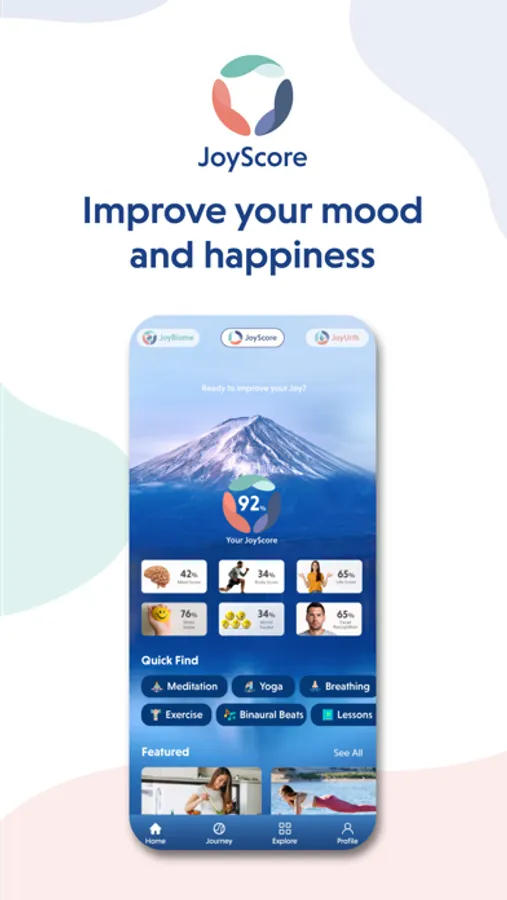 We believe that everyone deserves a life filled with happiness. That’s why we created JoyScore. We designed this self-care app to measure and improve your mood and overall happiness through personalized activities and exercises that make you feel better in minutes. It’s the perfect app to begin your personal growth journey.