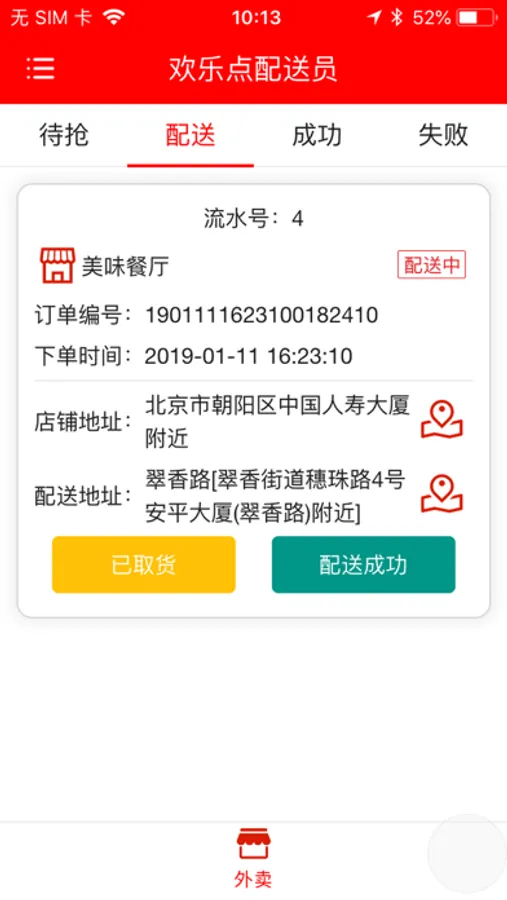 欢乐点配送员是珠海市科唯信息技术有限公司旗下的欢乐点微信点单系统推出的一款用于配送员接收订单的应用,用户只需要下载安装即可接收抢单信息,可查看抢单记录等等信息。