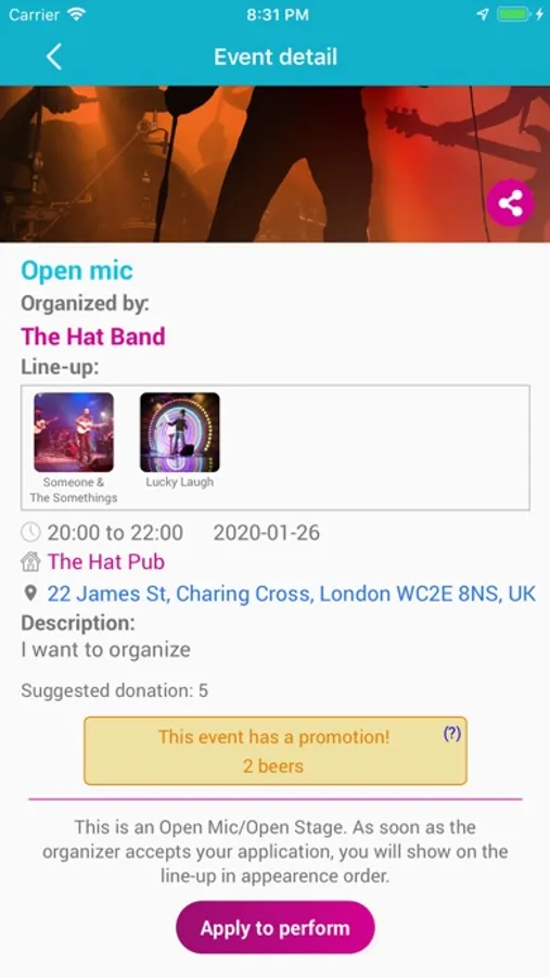 As a Venue, you can offer your stage for events and Open Mics in order to host new artists. You can encourage your customers to support adding promotions and that way you will get the best artists in town! The Hat will help you attracting new artists and customers.