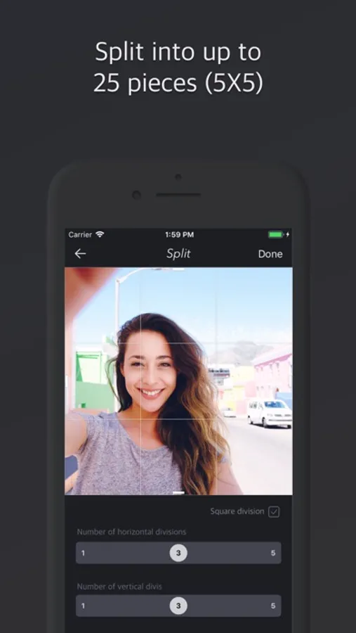 PhoSplit is easy to use! Save divided pieces of photo by touching a screen few times, and it's easy for anyone to use. Manage your Instagram in a new way, Experience making special feeds.