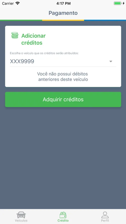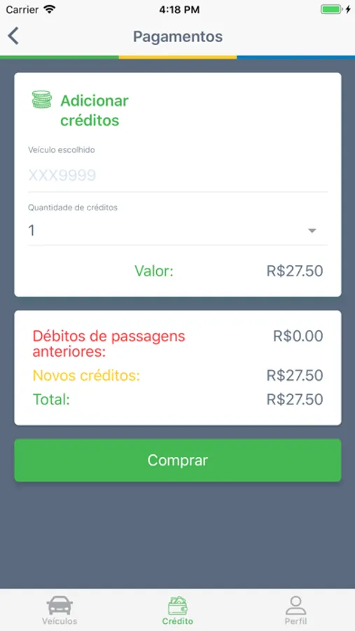 A regularização da taxa e o pagamento dos créditos adquiridos é realizado por meio de cartão de crédito.