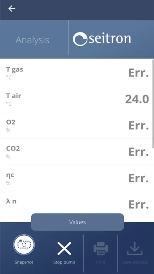 Seitron Smart Analysis allows you to interact with your Seitron mbustion analyzer through the Bluetooth Low Energy communication protocol (Bluetooth 4.0 or greater).
