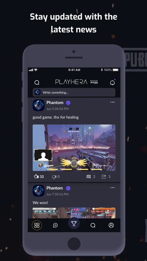 Customize your profile, share your gaming accomplishments and achievements, add interesting people to your friends list, follow your favourite teams and players, post screenshots and video clips in the News Feed, smash like buttons — PLAYHERA provides that all.