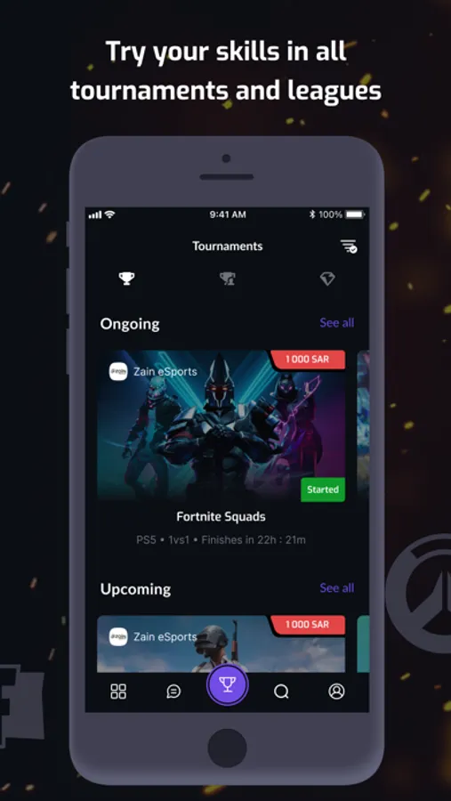 Access all of the epic events from E-Sport Leagues, National Championships, tournaments of all levels featuring the most popular games. Compete with eSports pro gamers and win real prizes.