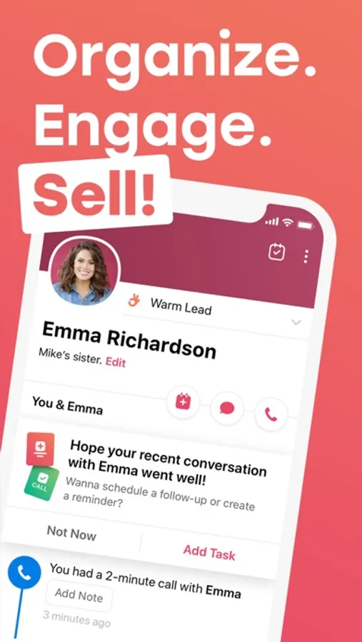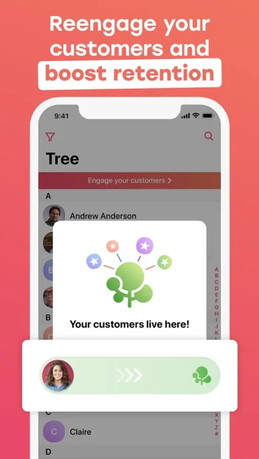 Sync your entire address book or selected contacts. Sort, rank, and prioritize your leads. Move existing customers to your client tree and reengage them to boost retention.