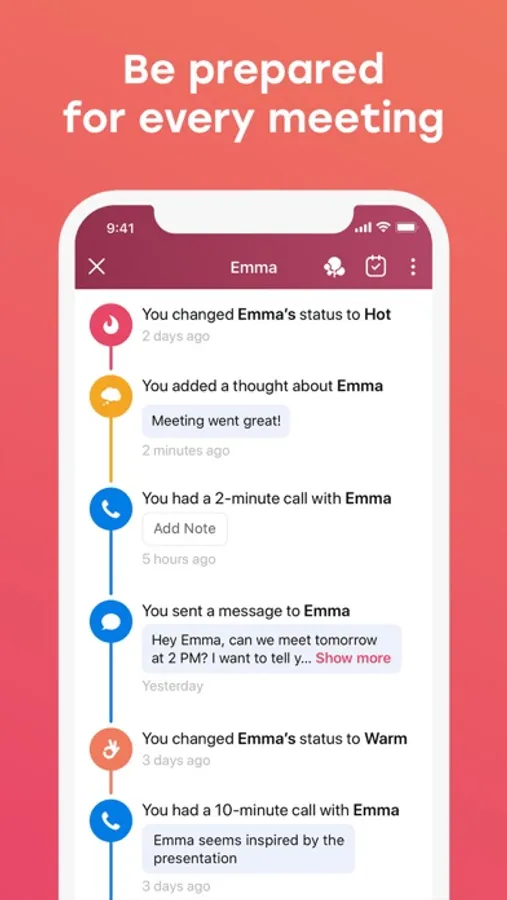 Treel automatically tracks your interactions with a contact. You can also add events manually as client relationships evolve. Keep the entire history of each relationship in one place to stay on top of your game.